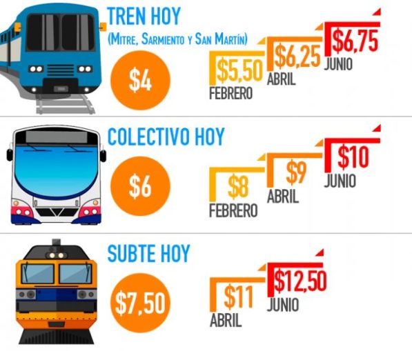 En tanto, el subte que hoy está $7,50 en febrero costará $9,50, en abril 11 y en junio$12.50.