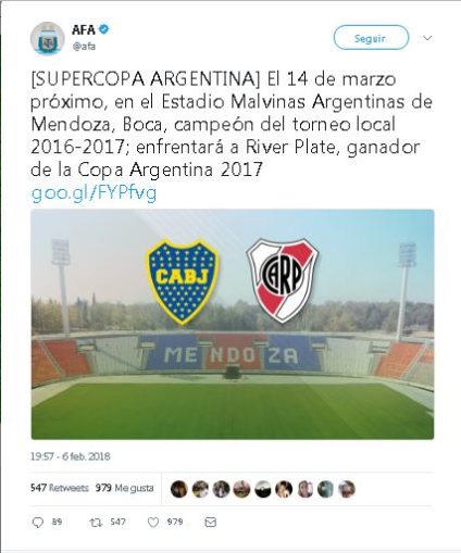 A esto hay que sumarle el precio de las entradas, que todavía no fue publicado. Sin embargo, teniendo en cuenta que una popular para ver la última Supercopa Argentina entre River y Lanús costó $ 300 y en las últimas horas se anunció un aumento sobre todos los sectores de la cancha de un 28%, hay que calcular un mínimo de $ 385 para la locación más accesible para el bolsillo.