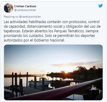 Cardozo explicó que en esta nueva instancia epidemiológica y de mayor responsabilidad individual, los vecinos residentes que salgan de La Costa no tendrán que hacer 14 días de aislamiento a su regreso, pero les pidió que tengan «máximo cuidado”.