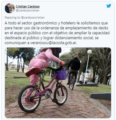 “A todo el sector gastronómico y hotelero le solicitamos que para hacer uso de la ordenanza de emplazamiento de decks en el espacio público con el objetivo de ampliar la capacidad destinada al público y lograr distanciamiento social, se comuniquen a veranosou@lacosta.gob.ar” precisó.