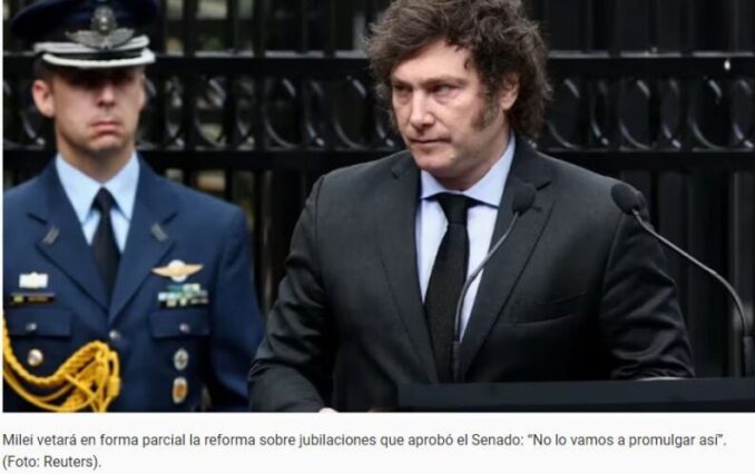 Javier Milei vetará el proyecto de jubilaciones aprobado este Jueves por el Senado. El Gobierno acusa a los legisladores de ser “irresponsables fiscales” y sostiene que “no hay fondos” para cumplir con la medida.