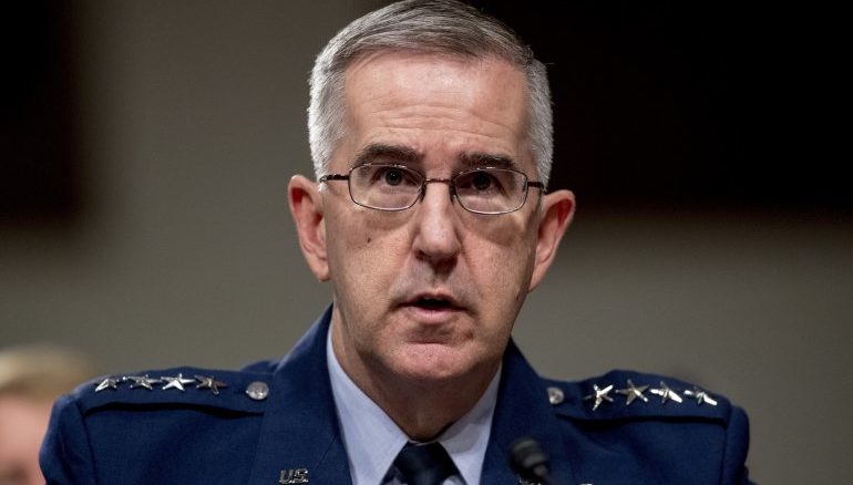 La oficial dijo a The Associated Press que el general John Hyten la sometió a una serie de contactos sexuales no deseados al besarla, abrazarla y frotarse contra ella en 2017 cuando era una de sus asistentes. La oficial dijo que el general intentó descarrilar su carrera militar después de rechazarle.