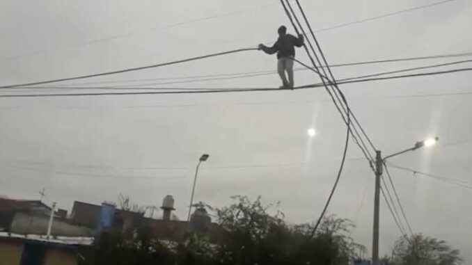 Un insólito robo se produjo en el partido de Lomas de Zamora, del sur del Gran Buenos Aires. Un ladrón “equilibrista” se trepó a un poste de luz y caminó sobre el cableado para robar el cobre de su interior. Las imágenes fueron captadas por un repartidor que pasaba por el lugar y se viralizaron.