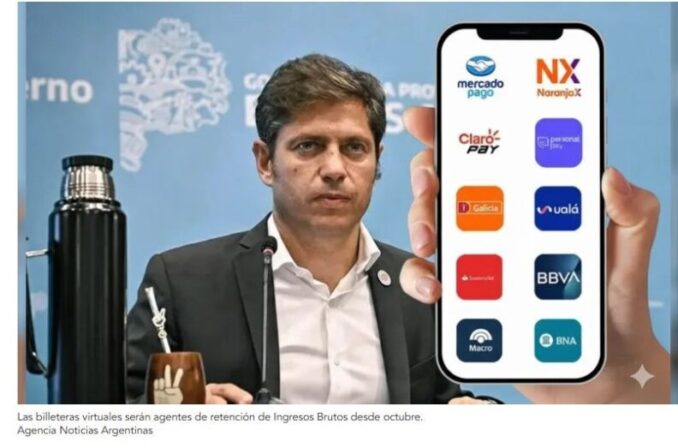 El gobierno de la provincia de Buenos Aires estableció la puesta en marcha, a partir de Octubre, de un régimen de recaudación del Impuesto sobre los Ingresos Brutos que alcanza a los montos acreditados en billeteras virtuales y cuentas de pago.