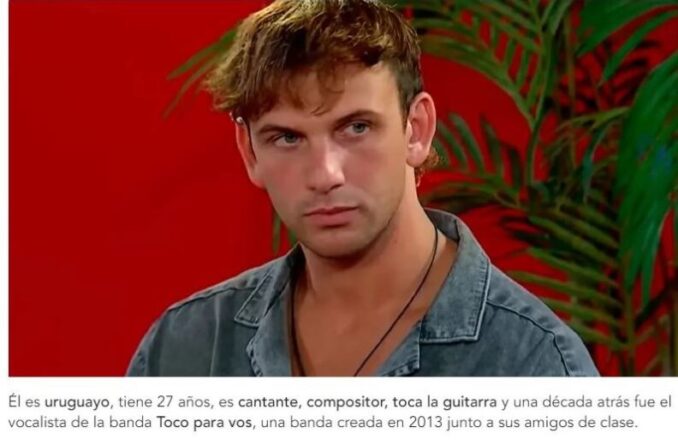 Él es uruguayo, tiene 27 años, es cantante, compositor, toca la guitarra y una década atrás fue el vocalista de la banda Toco para vos, una banda creada en 2013 junto a sus amigos de clase.