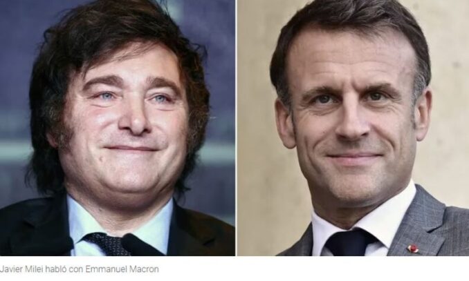 Durante una conversación telefónica que duró quince minutos, Emmanuel Macron felicitó a Milei por su contundente victoria sobre Sergio Massa en el balotaje y lo invitó a realizar una visita de Estado a Francia en el futuro. Además, discutieron temas como el cambio climático, una preocupación global que ha estado en la agenda de Macron, y el acuerdo del Mercosur y la Unión Europea que aún no ha entrado en vigencia.
