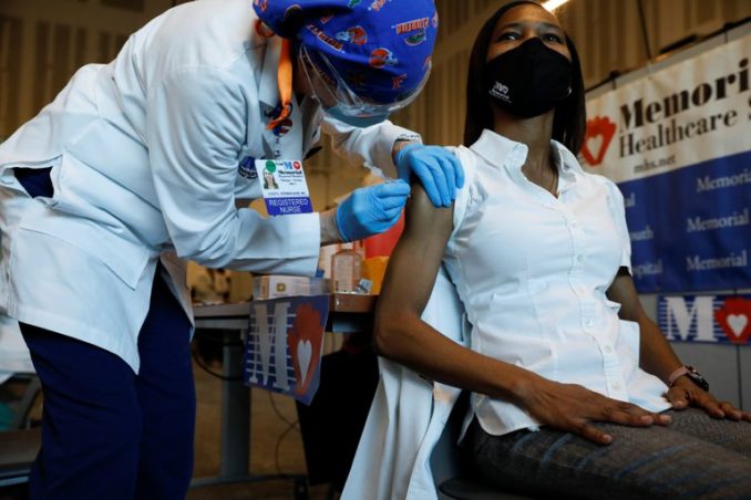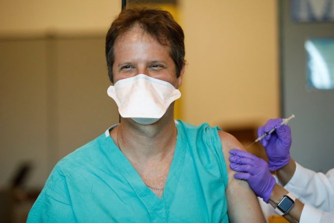 El doctor Ahaorn Sareli recibe la vacuna contra el COVID-19 en Miramar, Florida.