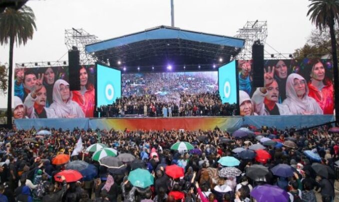 Así ironizaba la Vicepresidente en el comienzo de su discurso frente a una plaza llena de militancia. «Con esta lluvia, milagro. Dios y yo que quería ser una figurita de Billiken»,