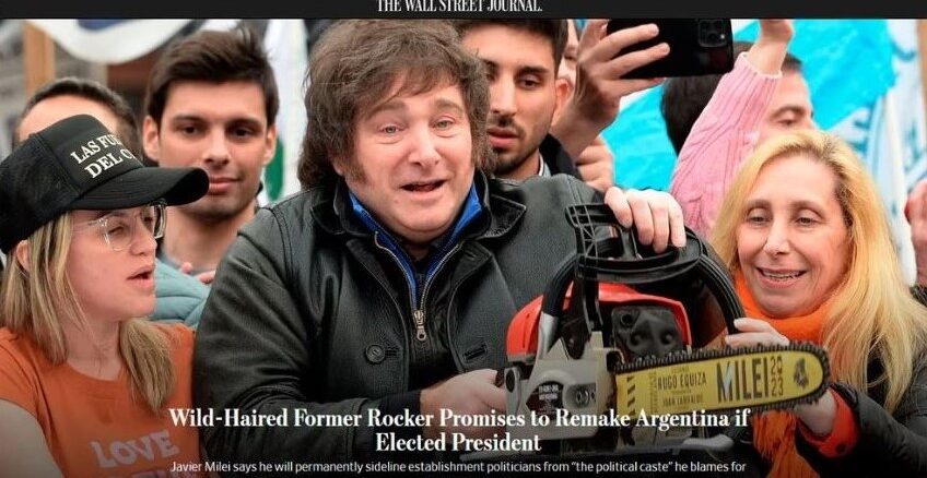 El artículo, titulado «Ex rocker con una imagen llamativa promete una renovación en Argentina si es elegido presidente», resalta la faceta más llamativa de Milei, personificada por su símbolo, una motosierra, que representa su intención de «transformar las instituciones del país y desafiar a los políticos de carrera». La publicación incluye una imagen de Milei junto a Carolina Píparo, candidata a gobernadora por el partido Libertad Avanza, y Karina Milei, su hermana, durante un evento de campaña.