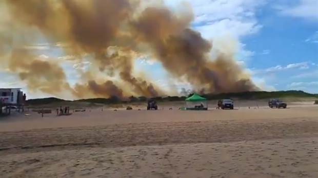 Un gran incendio se desató en los médanos de Villa Gesell, cerca del límite con Mar de las Pampas, por causas que se investigan. Intervienen al menos cinco dotaciones de bomberos, algunos de localidades cercanas como Pinamar y Ostende.