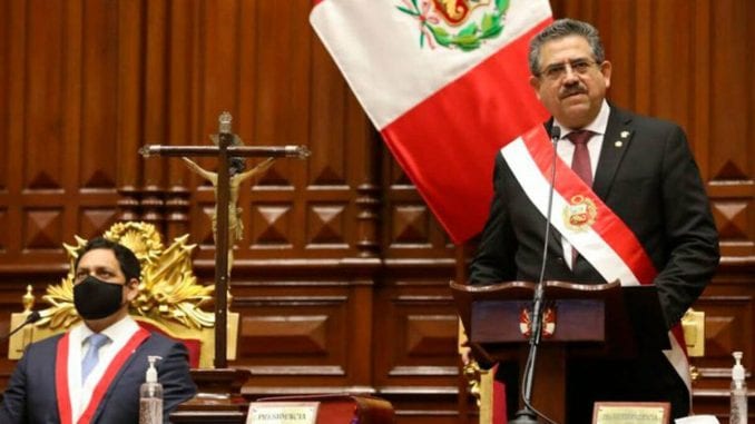 Manuel Merino asumió el mando en una sesión parlamentaria y se convirtió en el tercer presidente del Perú desde 2016, reflejo de la fragilidad institucional que ha caracterizado al antiguo virreinato español desde su independencia en 1821, según plantea la situación de ese país americano la prensa francesa.