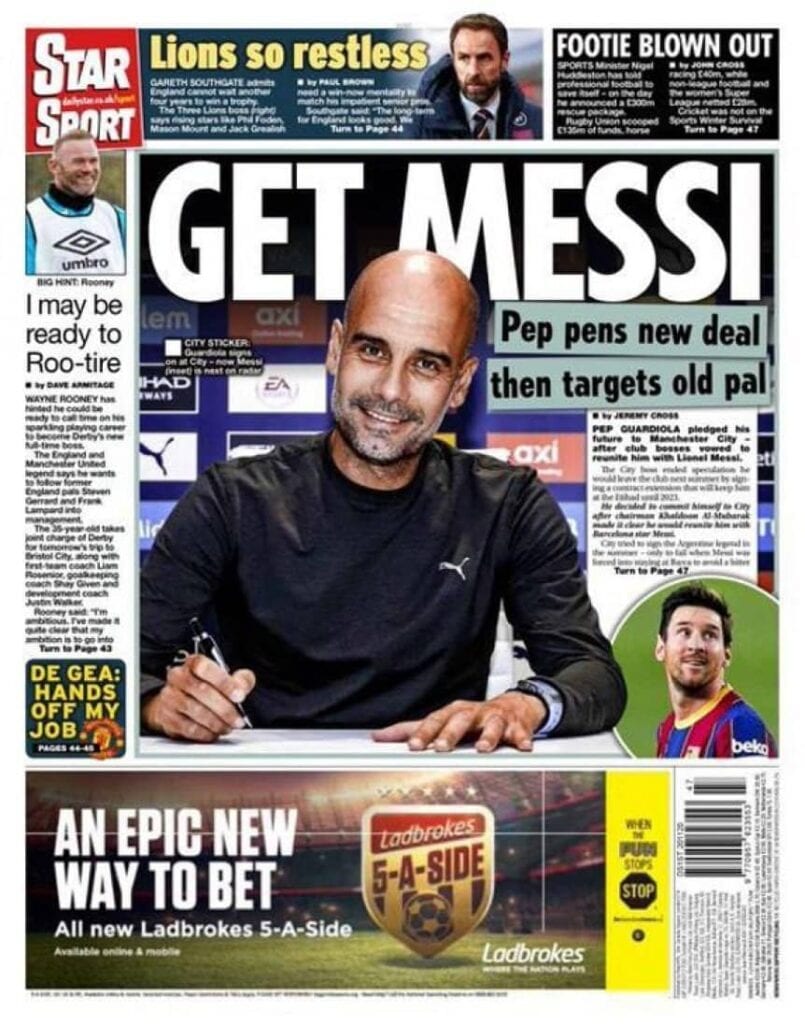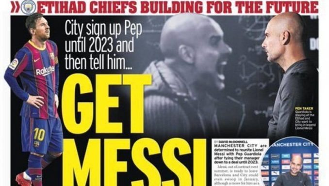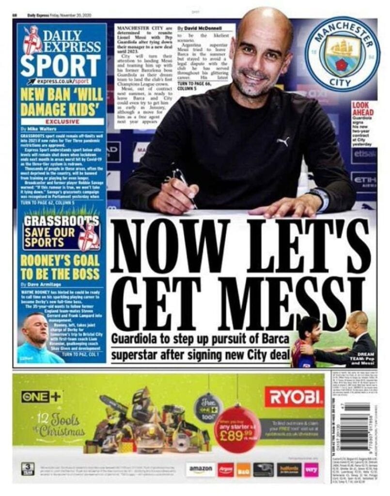 Uno de los que expresó este reclamo fue el “Daily Express”, que en su suplemento de deportes utilizó como portada principal una imagen de Guardiola firmando la extensión de su contrato y, al lado, un contundente “Ahora consigue a Messi”. Además, señalan que “Guardiola intensificará la búsqueda de la superestrella del Barça después de firmar su nuevo acuerdo con el City”.