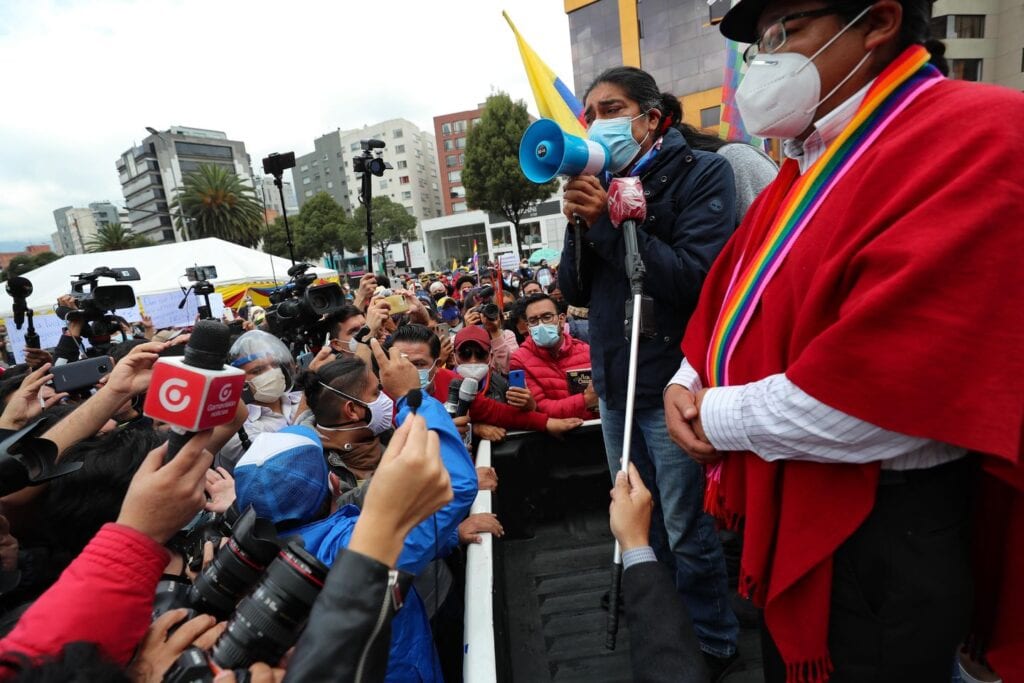 Cientos de manifestantes del candidato indígena, Yaku Pérez, recorrieron las calles de varias ciudades de Ecuador para manifestarse contra los resultados de la elección presidencial del Domingo pasado, en lo que aseguran es un intento de fraude electoral. Hasta el momento, en la elección se impuso el ex ministro Andrés Aráuz, cercano al ex presidente Rafael Correa, con el 32.62% de los votos.