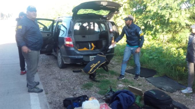 De esta manera, se implantaron distintos puestos de observación en la Ruta Nº 34, con la cooperación de la División Antidrogas San Pedro Jujuy. Luego de vigilancias, los efectivos observaron al vehículo involucrado en la maniobra que bajaba a gran velocidad en la ciudad jujeña de Fraile Pintado.