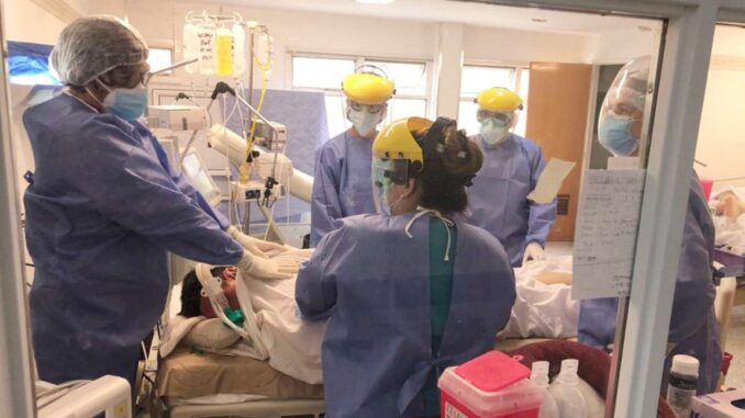 En la terapia intensiva del Hospital Muñiz el personal asegura que está trabajando “al 100% de sus posibilidades de mente y cuerpo” tanto médicos como el personal de enfermería, kinesiología, farmacéuticos, bioquímicos, de guardia y administrativos”.