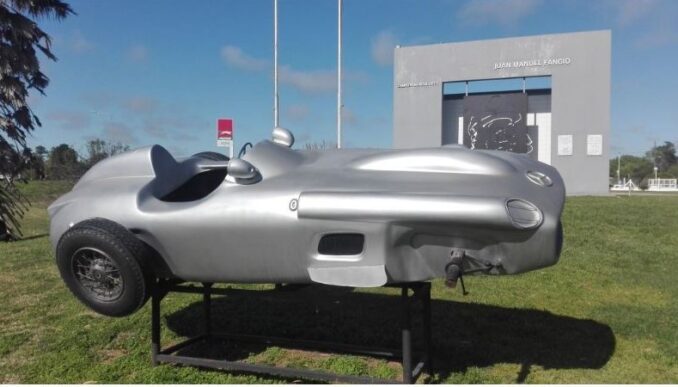 La obra en homenaje a Fangio, considerado como uno de los mejores pilotos de la historia de la Fórmula 1 con cinco títulos mundiales en su haber, sufrió el robo de la dos ruedas delanteras del automóvil, que se trata de una réplica del Mercedes Benz W196, la famosa «Flecha del Plata» que utilizaba.