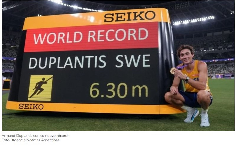 El estadounidense nacionalizado sueco, Armand Duplantis, se consagró campeón mundial de atletismo por tercera vez consecutiva rompiendo el récord vigente hasta ahora, de 6.29 metros, con 6,30.