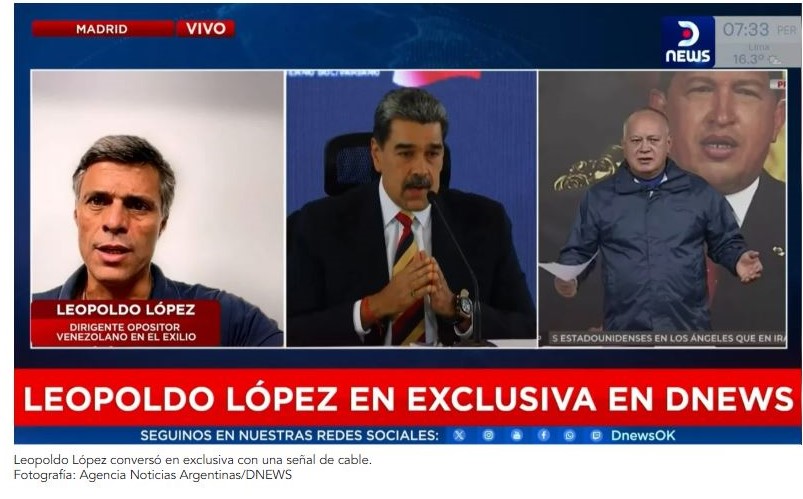 “Lo que está haciendo Maduro claramente es buscar intimidar a los venezolanos, es tratar de construir una amenaza para que los venezolanos tengan miedo de seguir soñando y avanzando hacia lo que queremos, que es la libertad”, comentó López en DNEWS.