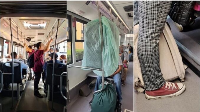Frente a la prohibición, las autoridades tomaron una decisión drástica para ofrecer una alternativa: se instalaron canastillas y espacios designados en los laterales de las unidades para que los pasajeros puedan colocar sus mochilas, maletas o bolsos de gran tamaño.