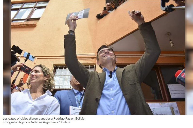 Paz, de tendencia liberal moderada, junto a su compañero de fórmula, Edmand Lara, logró imponerse por nueve puntos al ex mandatario Jorge «Tuto» Quiroga, de la alianza Libre, que alcanzó una votación del 45,44 por ciento, en una jornada histórica de la democracia boliviana.