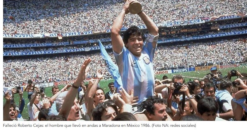 Roberto Cejas, el hombre que llevó en andas a Diego Armando Maradona durante la vuelta olímpica tras consagrarse campeón del mundo en México 1986 con la Selección argentina, falleció a los 68 años.