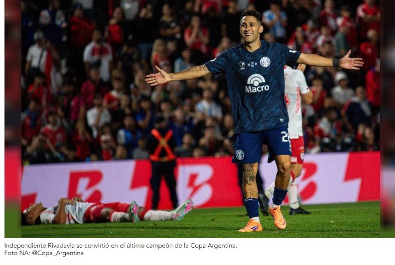 Independiente Rivadavia de Mendoza se consagró campeón de la Copa Argentina por primera vez en su historia tras vencer 5-3 en penales a Argentinos Juniors, luego de igualar 2-2 en el tiempo regular, en un partido llevado a cabo en el estadio Juan Domingo Perón de Córdoba.