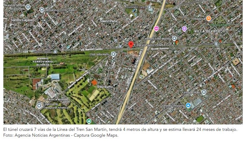 El túnel, que unirá las localidades de Sáenz Peña y Villa Raffo, en el partido de Tres de Febrero, estará ubicado a la altura de la Avenida América, es considerado el proyecto de infraestructura ferroviaria más importante en construcción en el Área Metropolitana de Buenos Aires, que tendrá cuatro metros de altura.