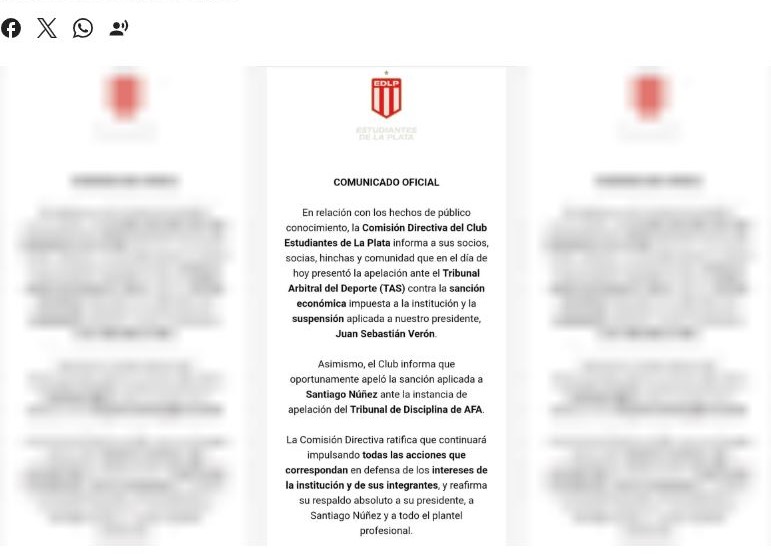 A través de un comunicado oficial, Estudiantes de La Plata informó que presentó una apelación ante el Tribunal Arbitral del Deporte (TAS) contra la sanción económica impuesta al club y la suspensión aplicada a su presidente, Juan Sebastián Verón, en una decisión que expone un firme posicionamiento dirigencial.